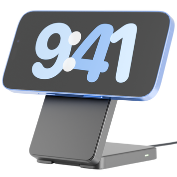 Compact folding MagSafe stand that travels easily, grips my phone securely and keeps it charged and perfectly angled on my desk.