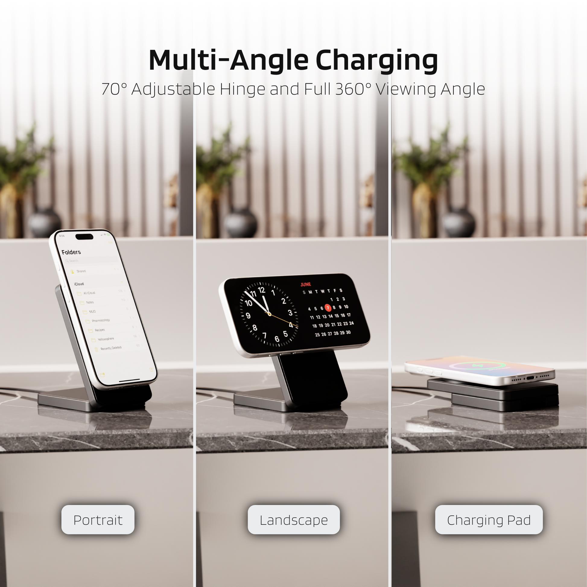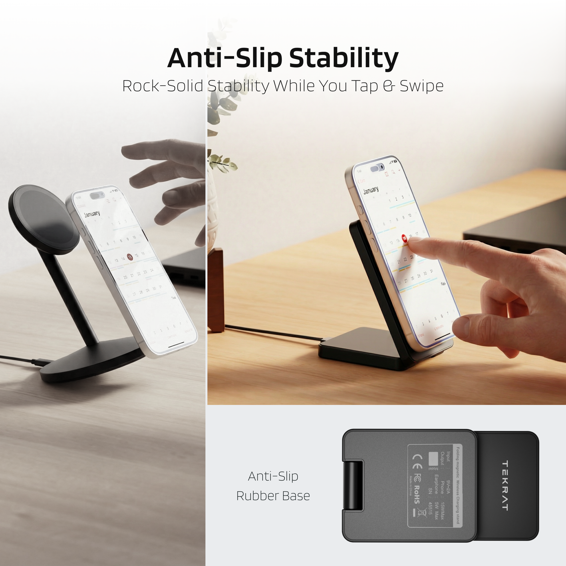 Sleek, powerful, and portable – the TEKRAT FoldMag Stand is the ultimate MagSafe wireless charger for home, work, and travel.