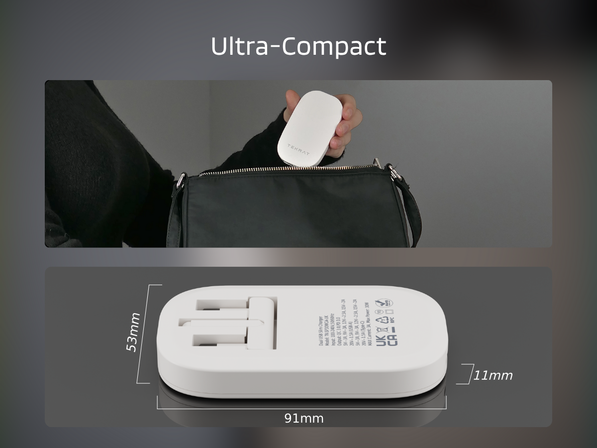 At just 11mm thin, the TEKRAT Slim Charger fits effortlessly into any bag or pocket — giving you fast, reliable power wherever you go.