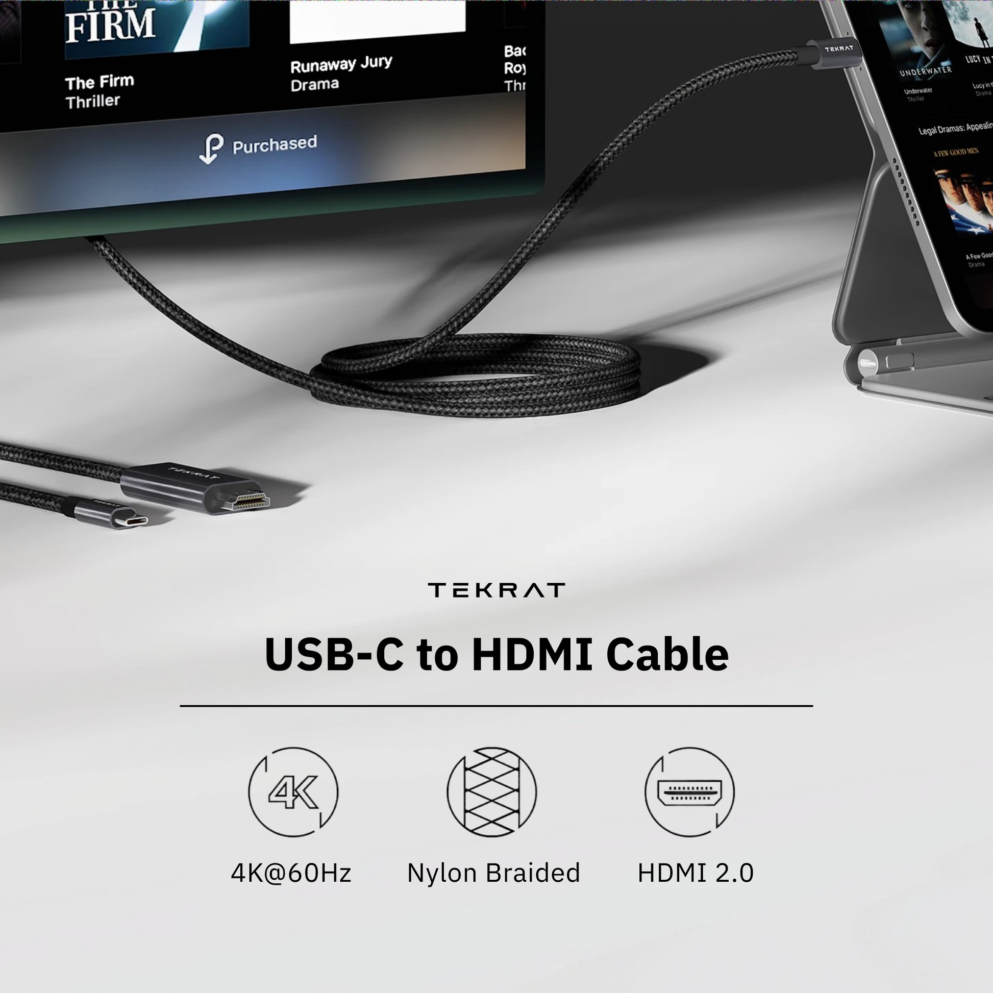 - 1x TEKRAT USB-C to HDMI 2.0 Cable (2m / 6.6ft)