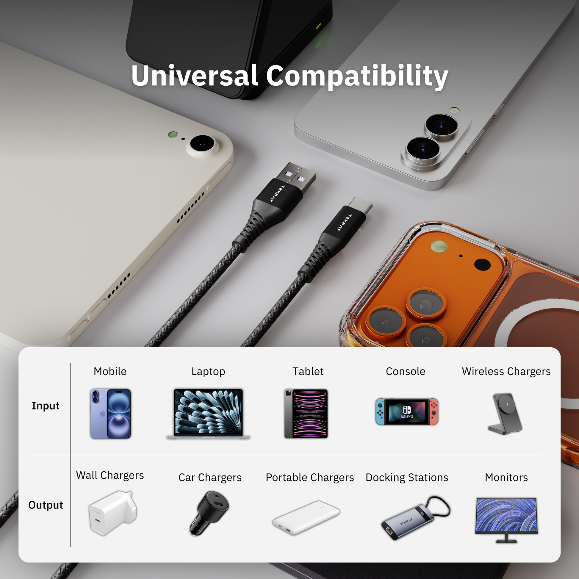 - 1x TEKRAT USB-C to USB-A Cable (1m or 2m)