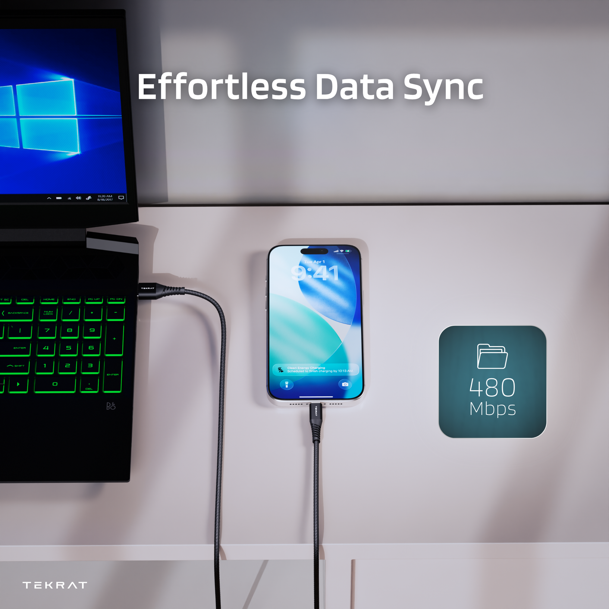 - Durable Braided Build – Reinforced nylon braided exterior and flexible TPE strain relief provide exceptional strength, tested for 10,000+ bends to resist fraying and wear.